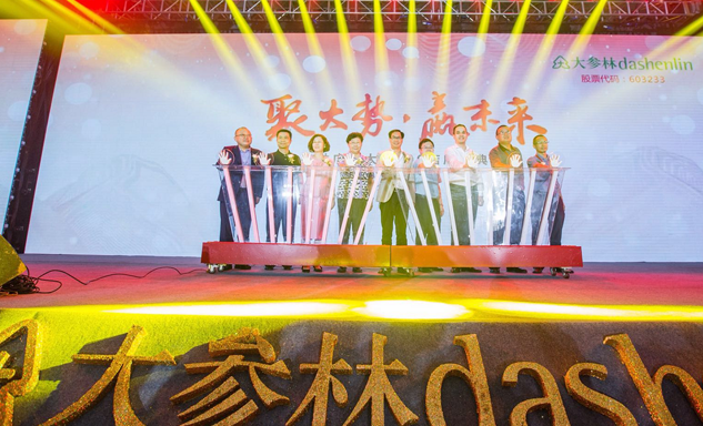 太阳成集团tyc33455药业集团董事长刘景萍女士与大参林医药集团董事长柯云峰先生、中国医药商业协会执行会长付明仲女士等嘉宾共同开启了“聚大势•赢未来"大参林工商合作峰会的大幕。